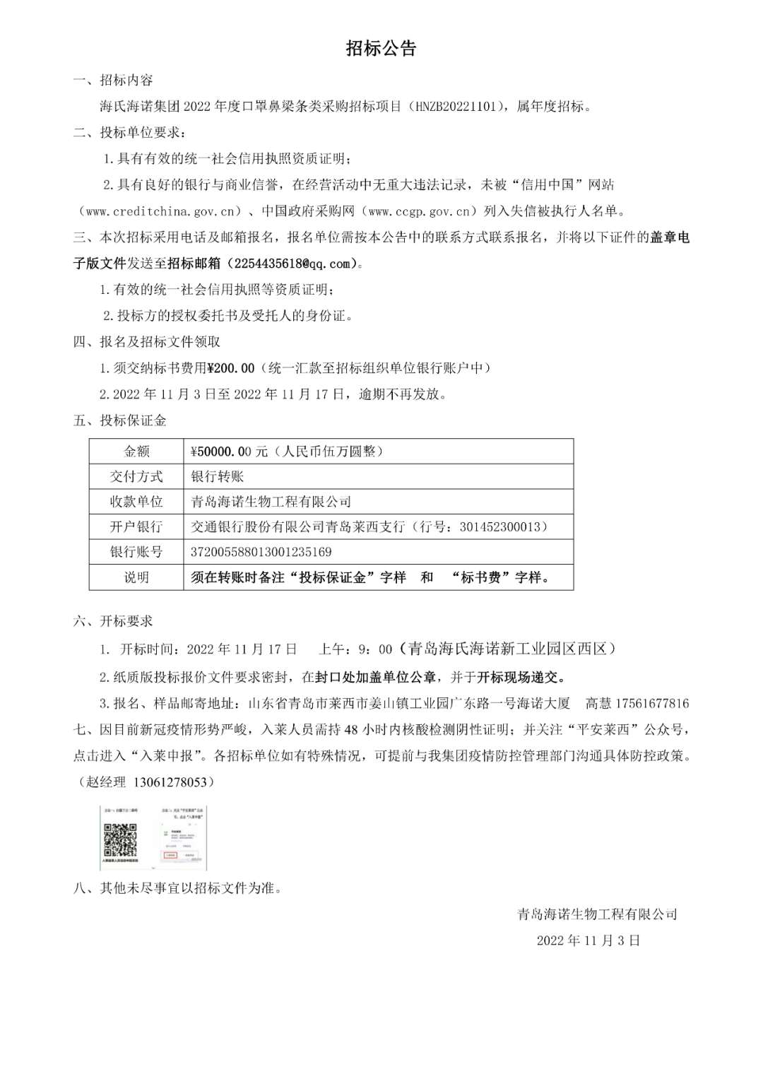 招标公告 | 尊龙凯时-人生就是搏集团 2022 年度口罩鼻梁条类采购招标项目正式开启