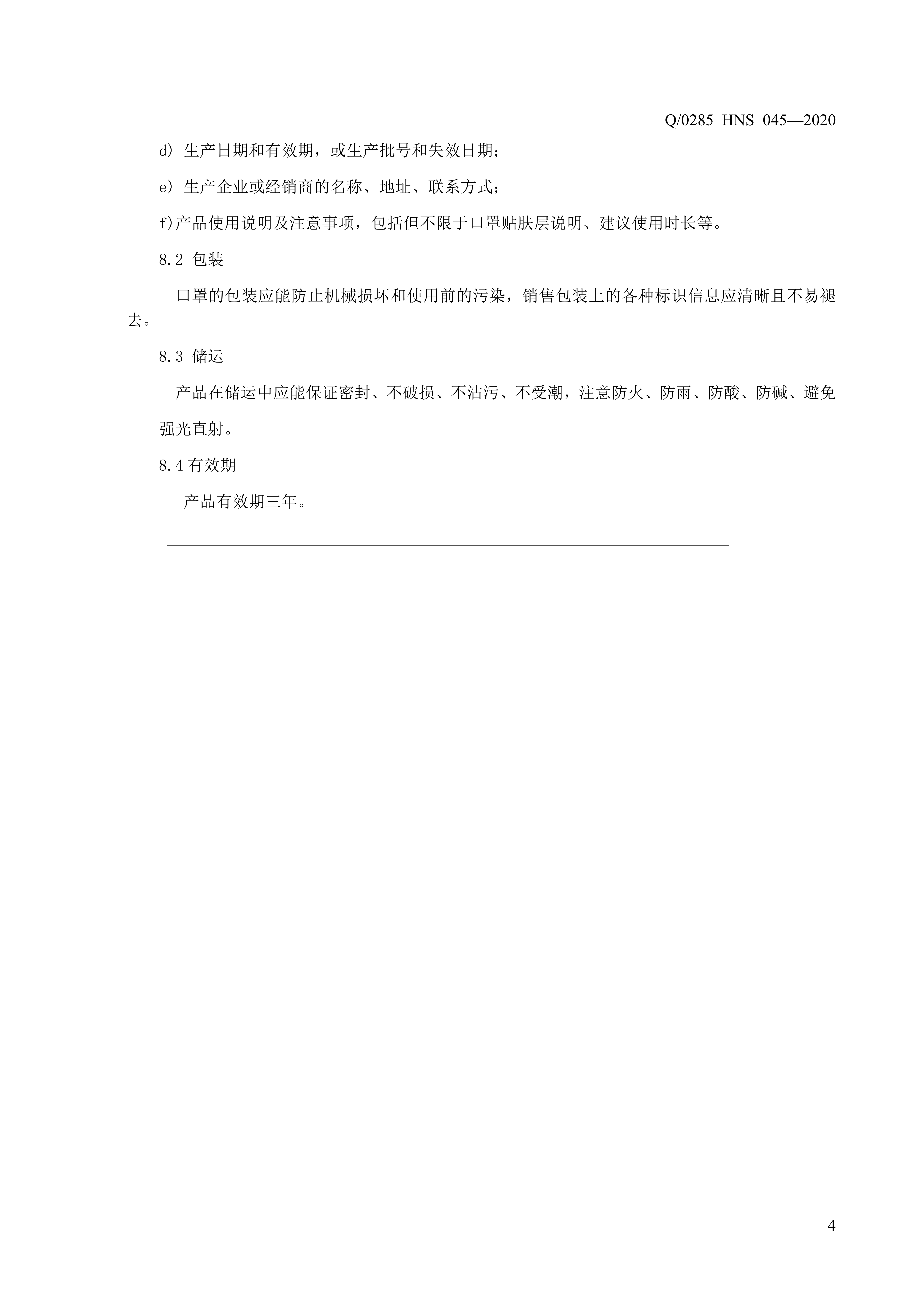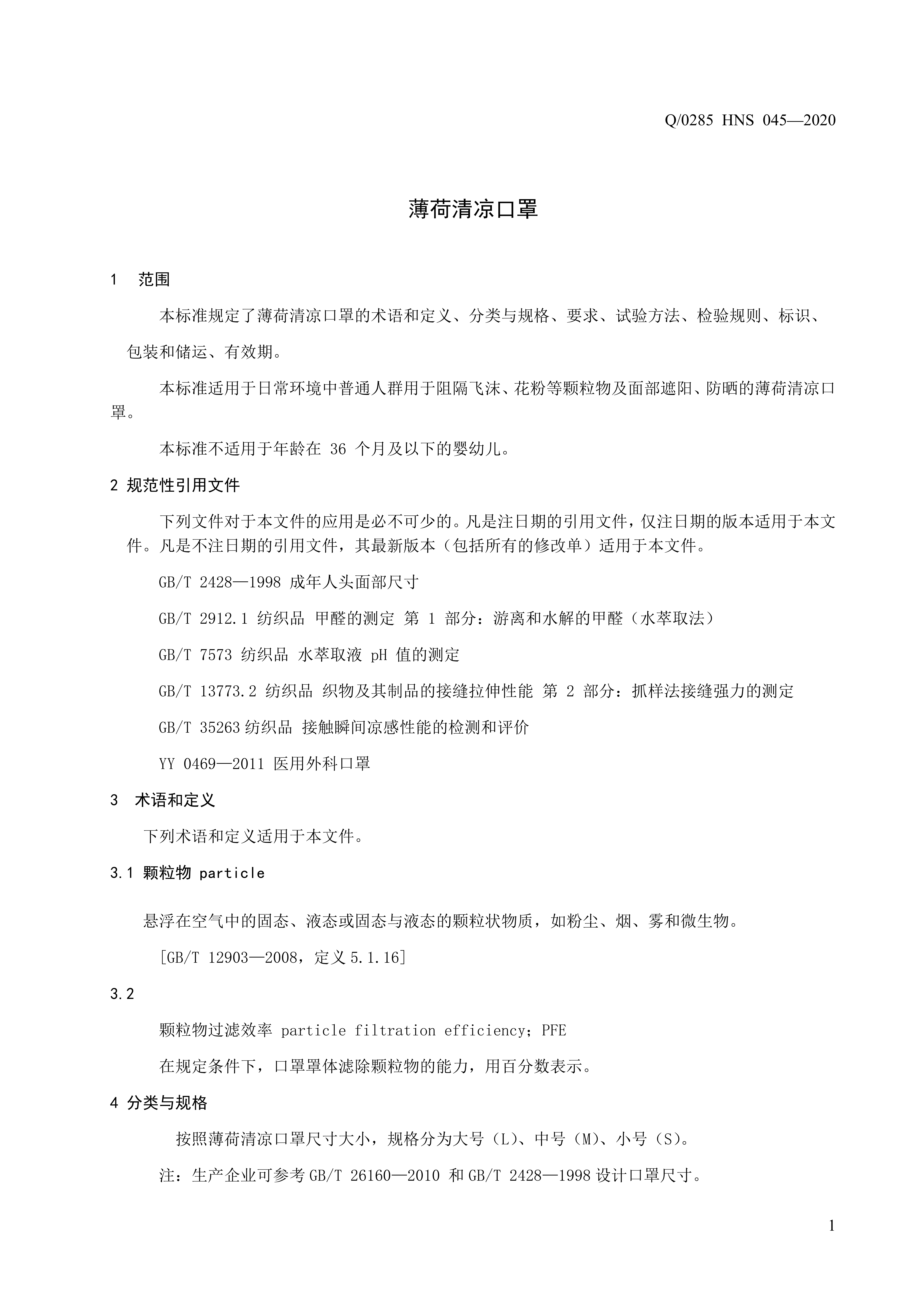 青岛海诺生物工程有限公司企业标准 — 薄荷清凉口罩